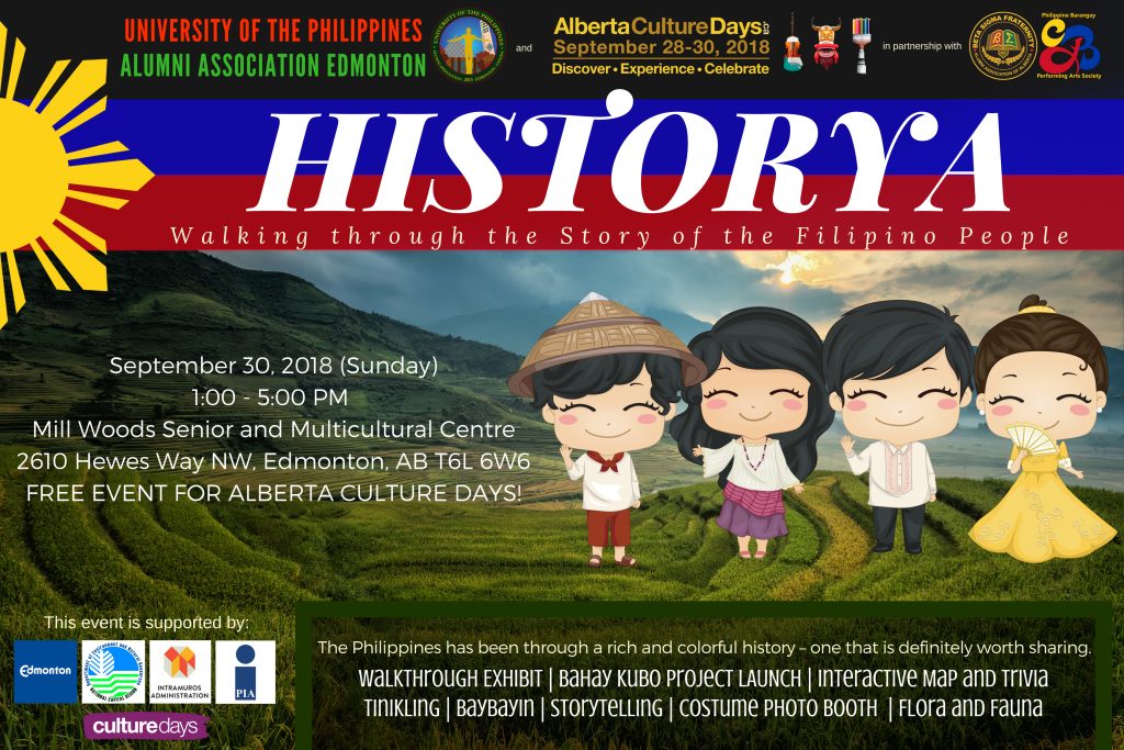 The University of the Philippines Alumni Association of Edmonton is proud to be part of this year’s Alberta Culture Days 2018 as a celebration site.